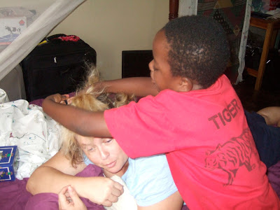 the next day, Allenni wanted to give me a massage and Isaiah enjoyed spreading lotion all over my face. I couldn't have enjoyed it better!