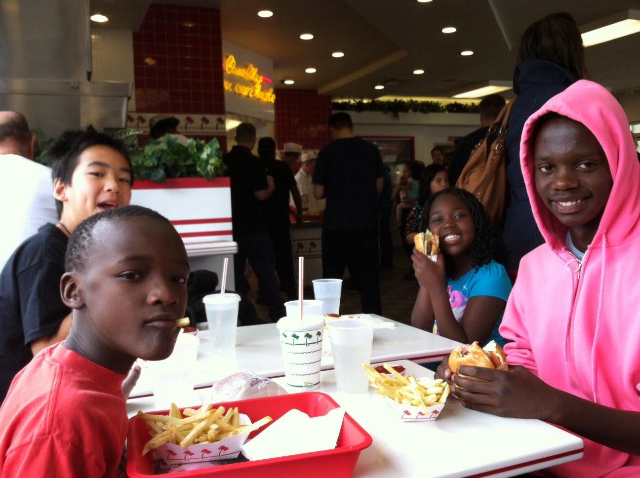 Allenni and Graham- Burgers - animal style Graham must have just said some thing witty. |
